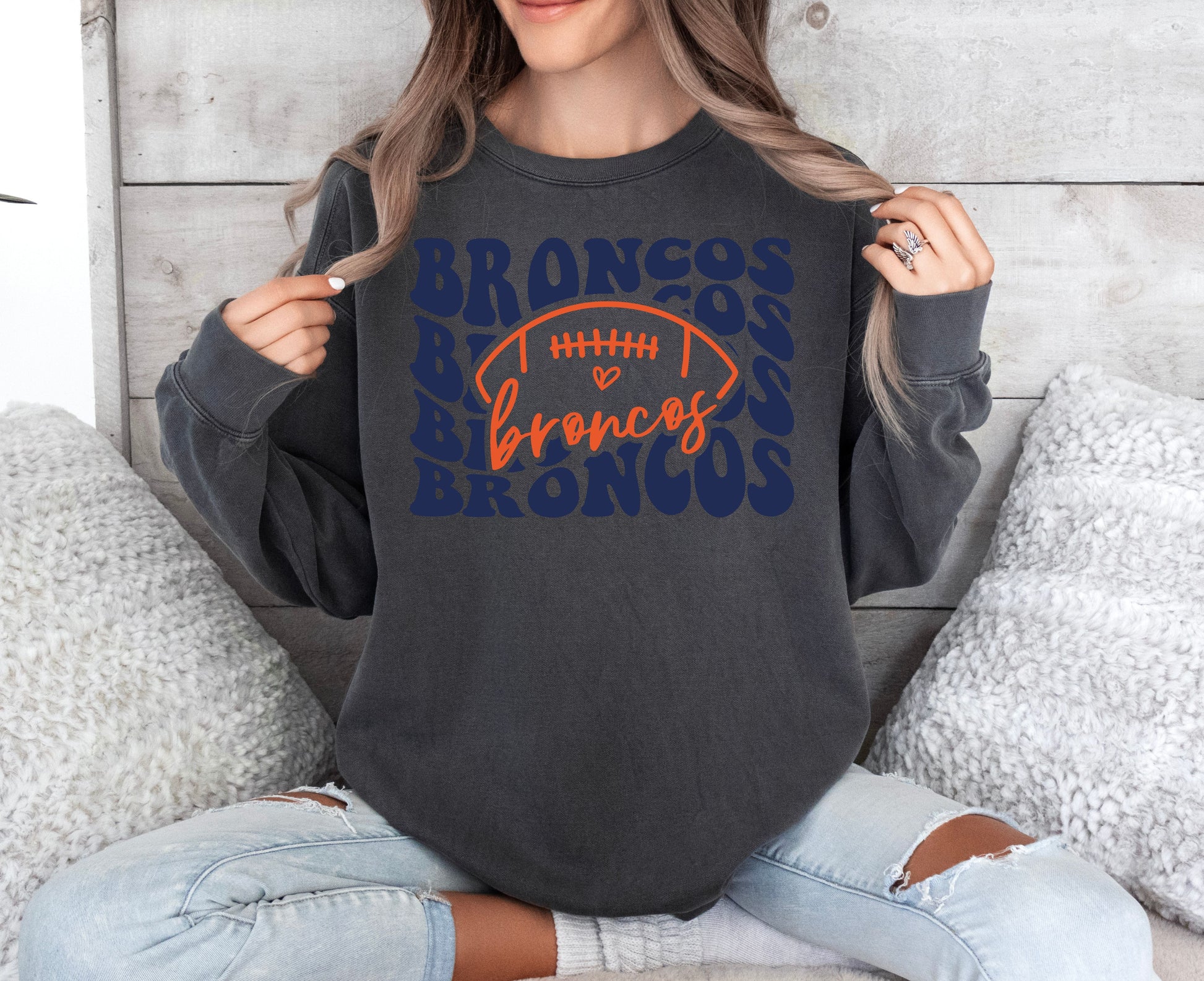 Broncos Groovy Repeat Vintage Wash Hoodie or Crew